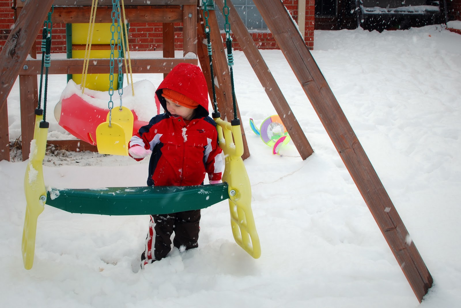 No, I didn't make a mistake - that's exactly how he says it. He was ready to go in. I think it took us just as long to get bundled up as it did to actually play outside!